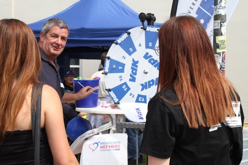 Am Stand konnten die Festivalbesucher sich über die Themen Behinderung, Barrierefreiheit, Pflegeversicherung und Rente informieren sowie bei Bedarf eine individuelle Beratung in Anspruch nehmen. Auch der Schattenplatz zum Ausruhen und Klönen bei Kaffee und Kuchen im generationsübergreifenden Café wurde gern angenommen. Ein besonderer Anziehungspunkt war das VdK-Glücksrad, wo Hilfsmittel für das Alter und die Freizeit als Gewinn warteten. Mit seiner Präsenz auf dem Festival will der VdK das Vorurteil abbauen, dass Behinderung, Armut und Krankheit nur Themen für „alte Menschen“ sind, und so zeigen, dass der VdK auch für junge Menschen von Bedeutung ist.