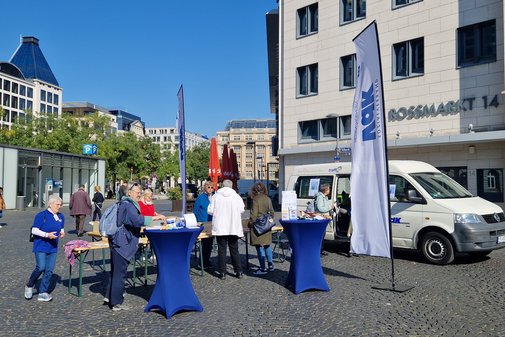 Mit der “Tour de Demenz” gelang es dem VdK Hessen-Thüringen, auf dem Königsteiner Kapuzinerplatz, auf dem Roßmarkt in Frankfurt sowie auf dem Ludwigsplatz in Darmstadt auf den Schwerpunkt Demenz aufmerksam zu machen. Die starke Resonanz der Passantinnen und Passanten, die sich an den VdK-Ständen informierten, zeigte, dass Demenz - mit etwa 1,84 Millionen erkrankten Menschen in Deutschland - keine Randerscheinung mehr ist.