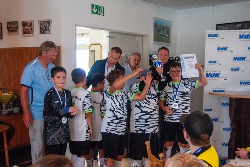 Nach dem Turnier übergaben der Bürgermeister der Stadt Bad Camberg, Daniel Rühl, Michael Trippel, der sportliche Leiter des HBRS, und der Vorsitzende des VdK-Bezirksverbands Wiesbaden, Claus Eckerlin, die Medaillen und Pokale an die glücklichen Teams.